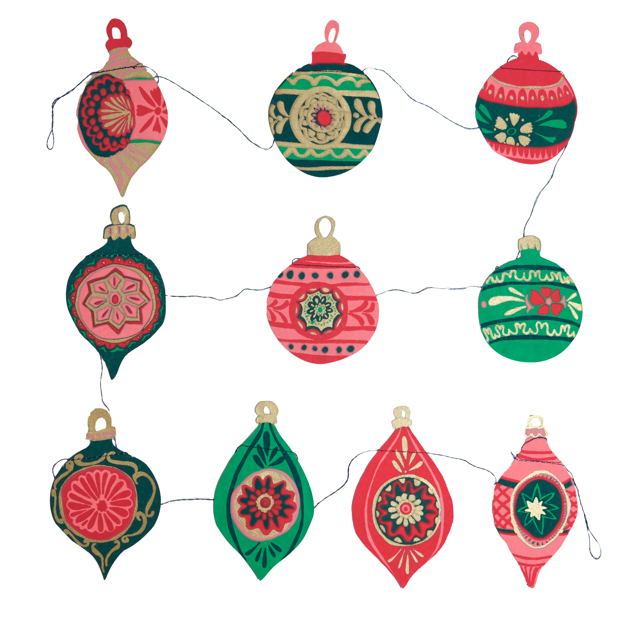 One of our original and best selling designs, the Bauble garland has ten vintage glass inspired ornaments spread along the three metre length.