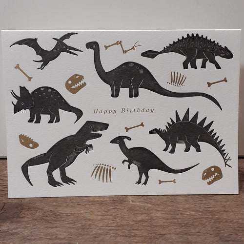 Dinosaurs Letterpress and Gold Foil Birthday Card