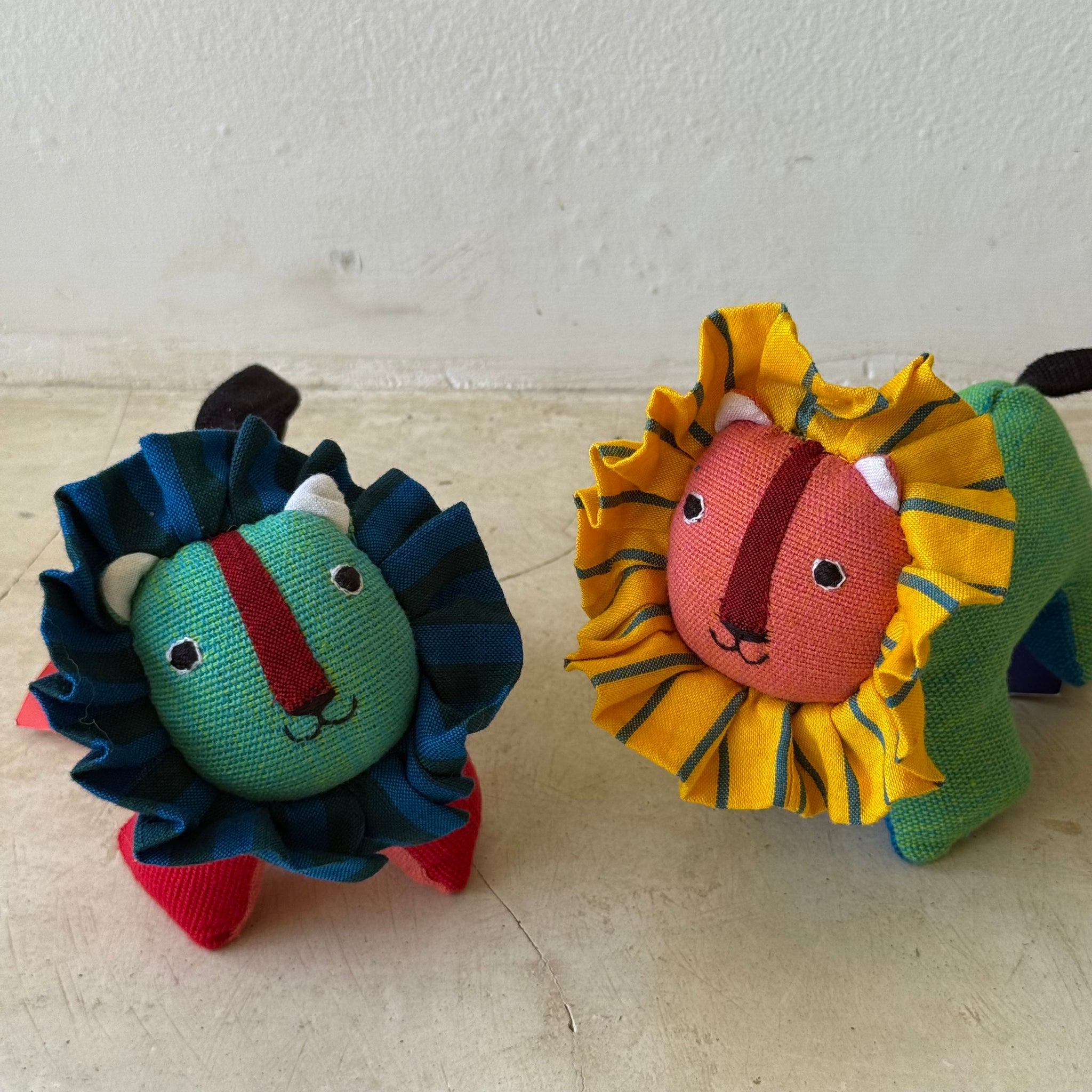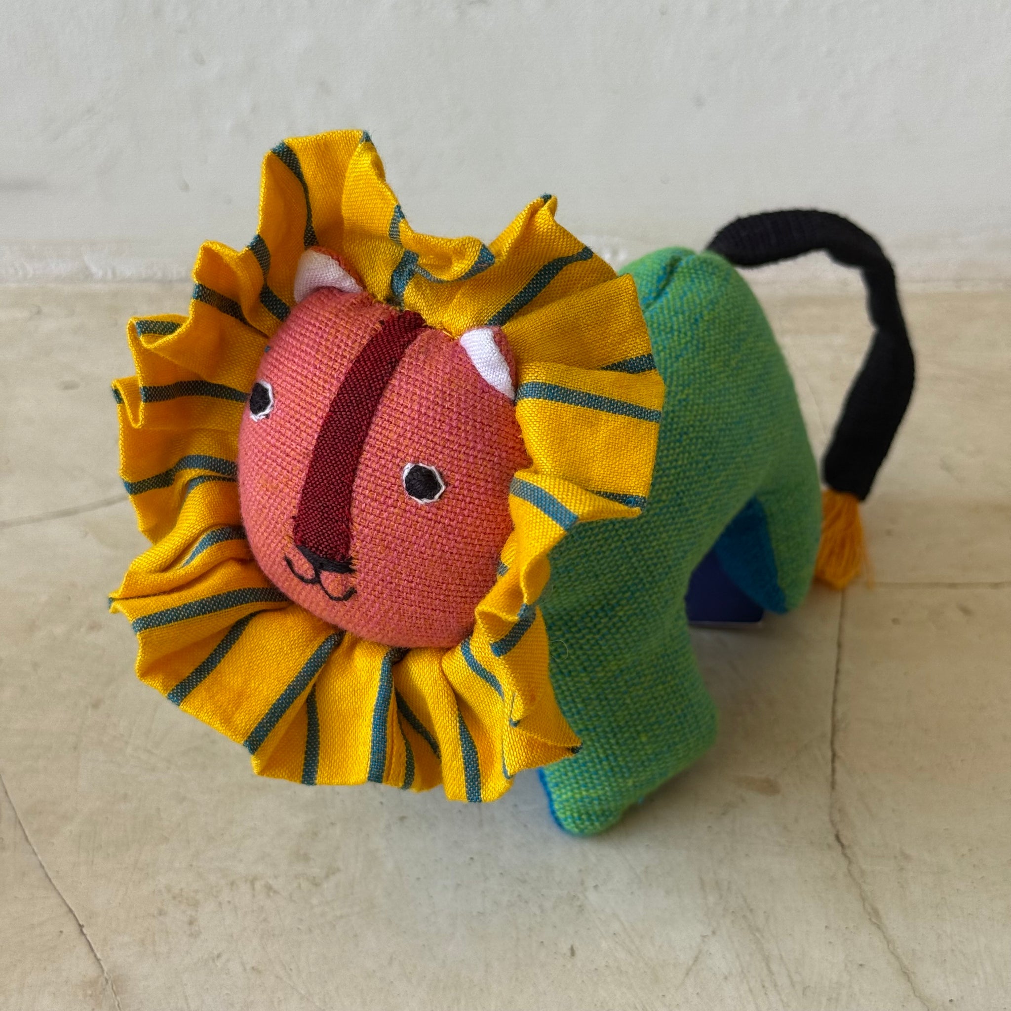 Super cute and colourful handmade lion. Colourfully dressed in handloom fabrics. Delightful keepsake toys to love and cherish.