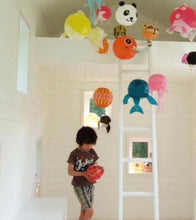 Simply Inflate the balloon by blowing through the little hole. If played with carefully the balloons can be flattened and blown up again and again. If you want to hang the balloons the easiest way is to tie some thread to an uncoiled paper clip and insert it in the hole. The thread can be attached to the ceiling with washi tape or white tack