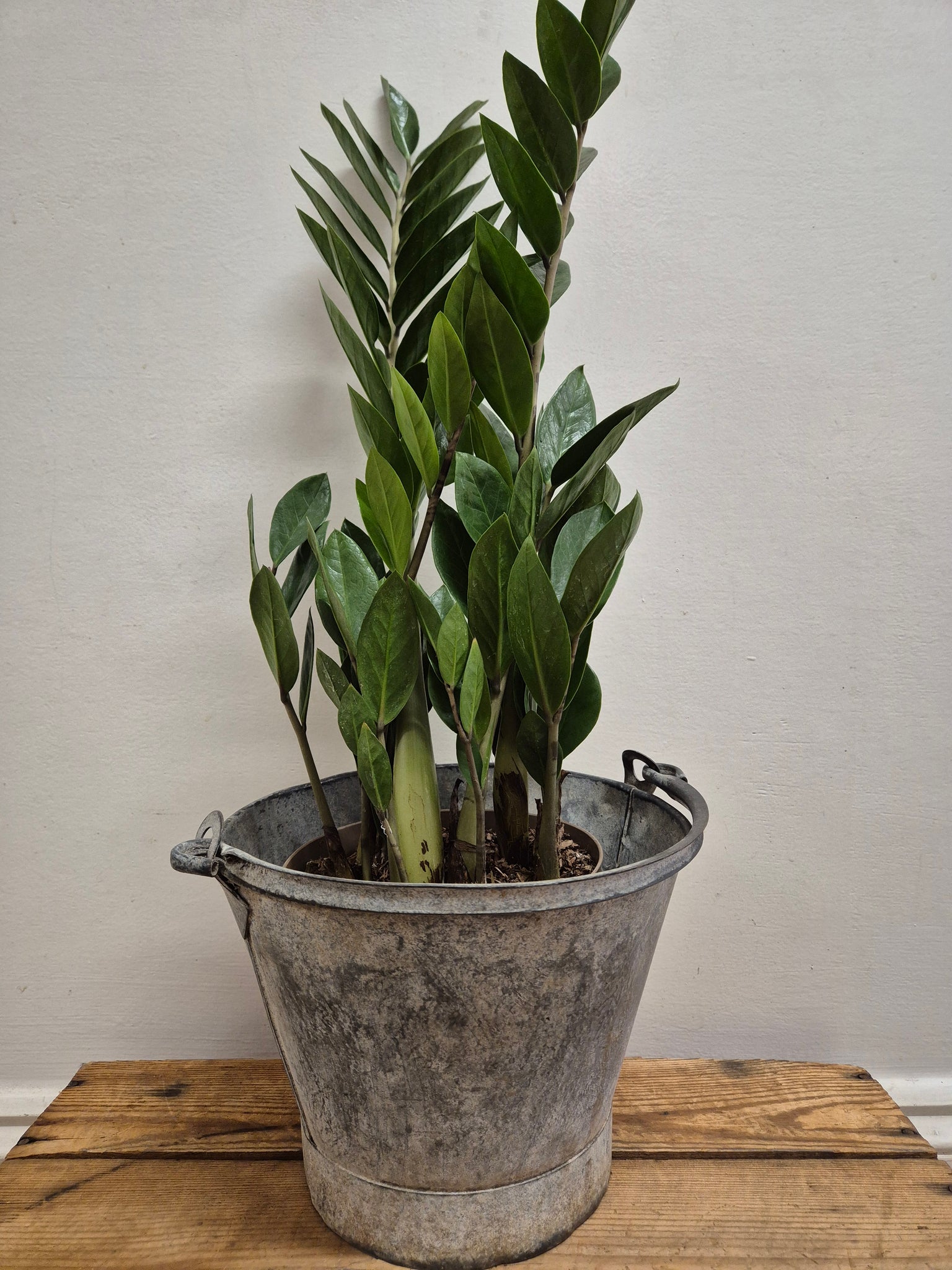 The ZZ plant comes from the jungles of Central Africa, and its striking architectural foliage fits well into a shady corner or on a desk. Note: this plant is poisonous to pets.