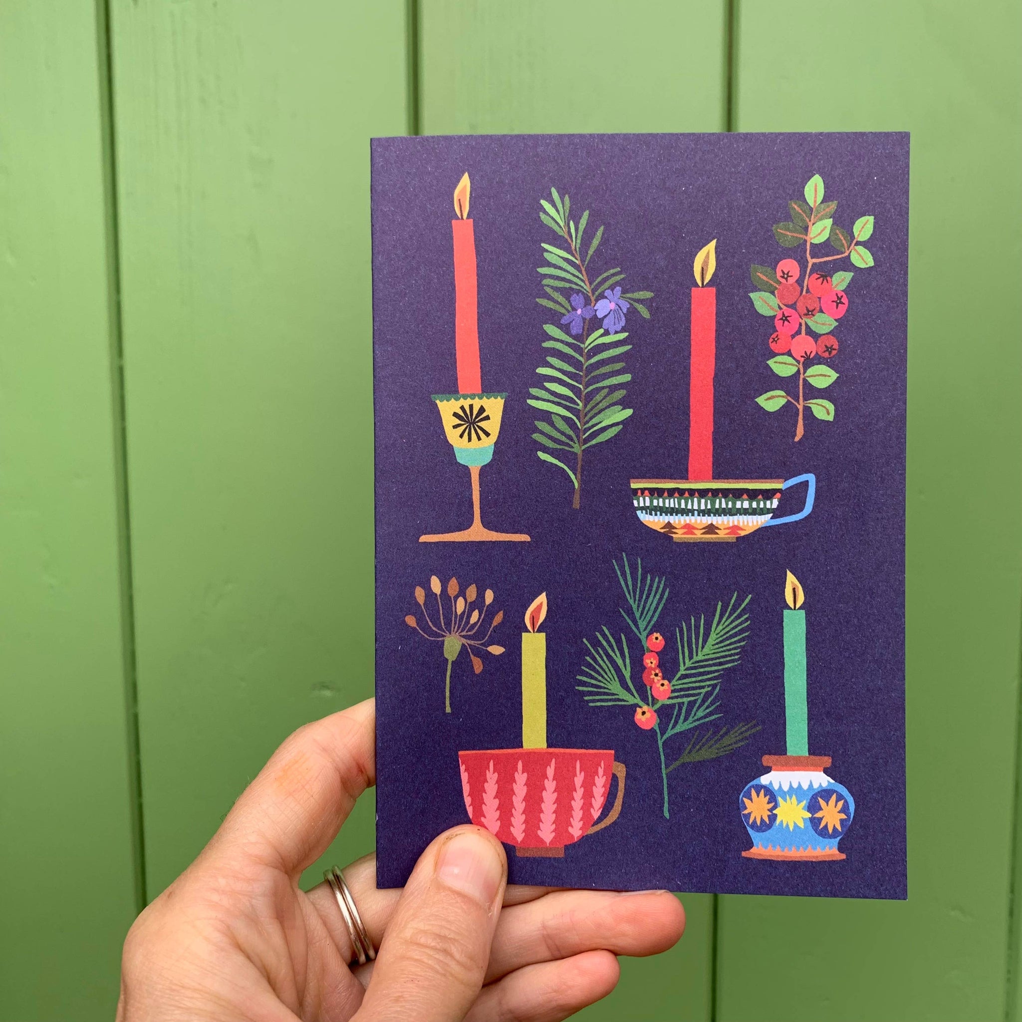 A6 Greetings card with Candle ‘Yuletide’ Illustration, blank inside. Ideal for Christmas Packaged with a translucent paper bellyband - Recycled paper & envelope. Printed locally to Brie’s Studio in Suffolk