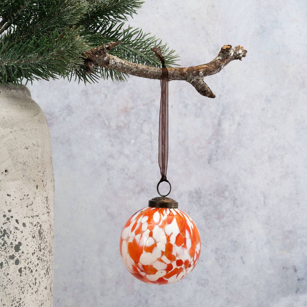 Tangerine Mouth Blown Glass Hanging Bauble - 7.5cm