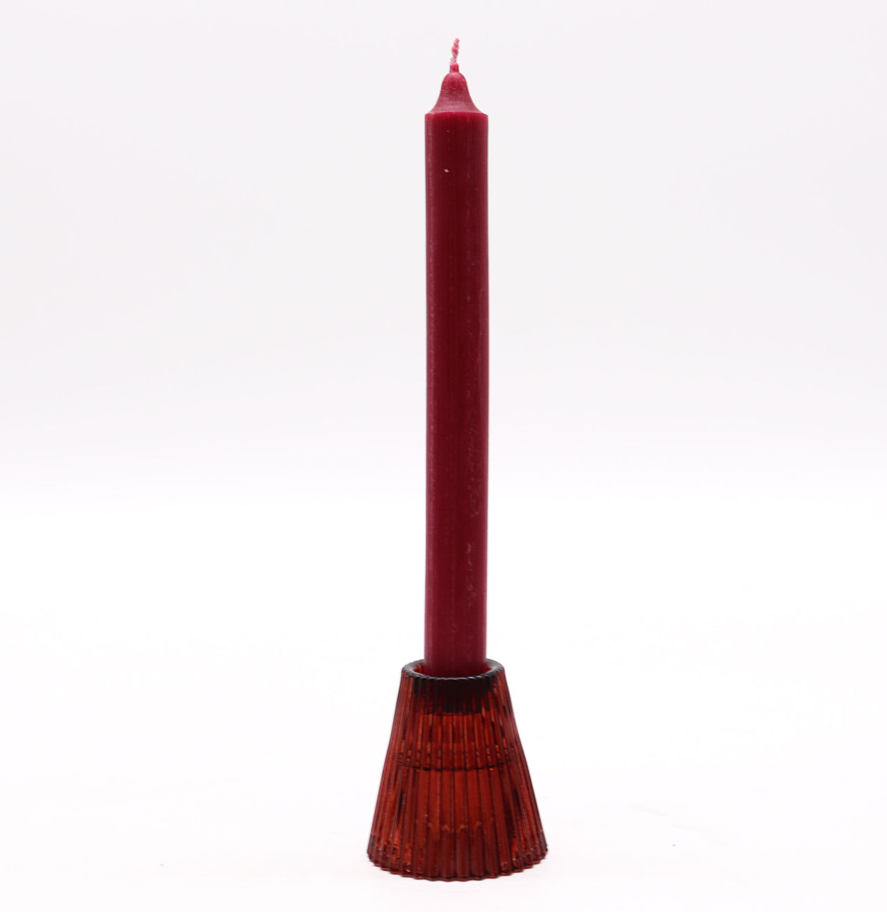 Made from high-quality glass, this red candle holder features a unique flip design, allowing it to hold both dinner candles and tealights.